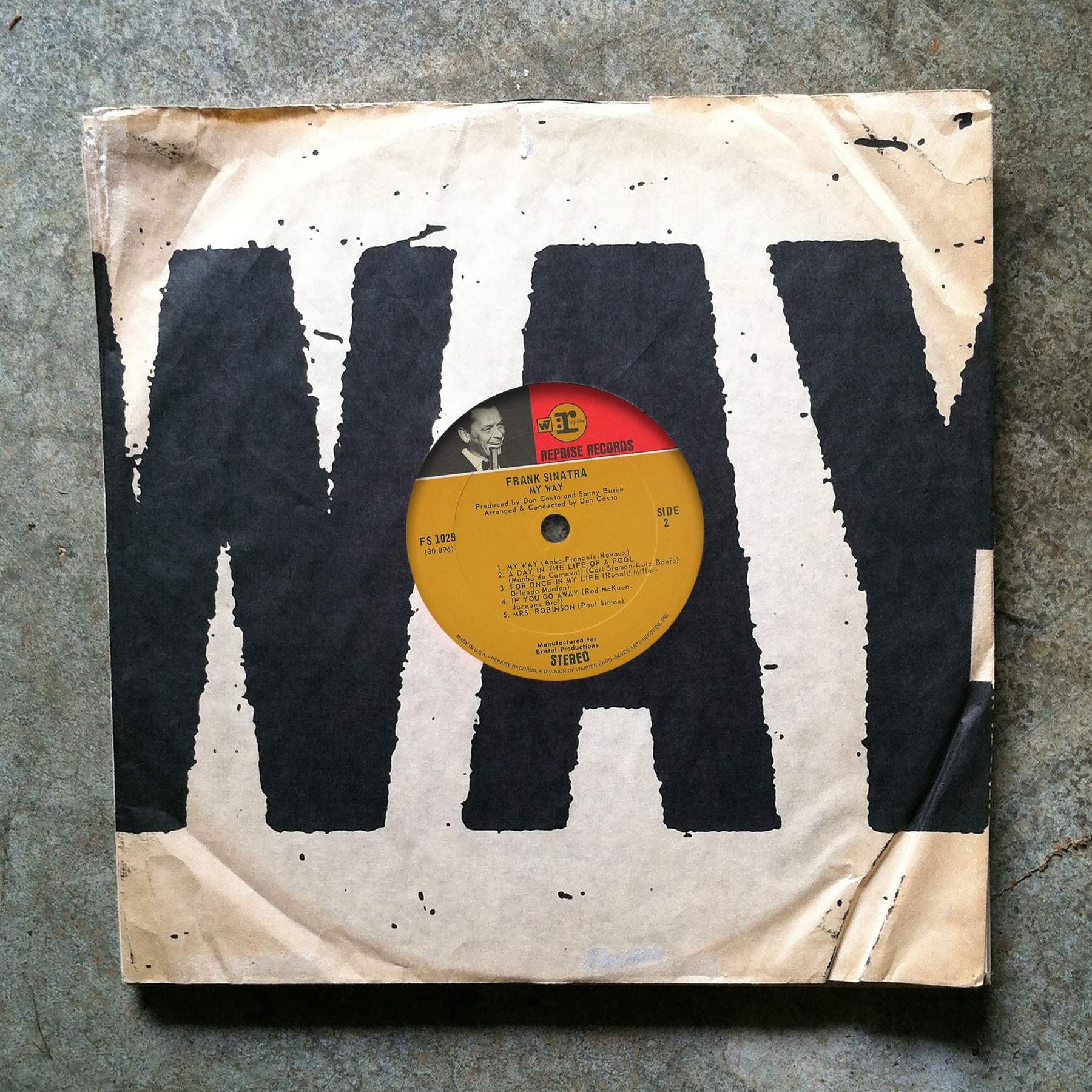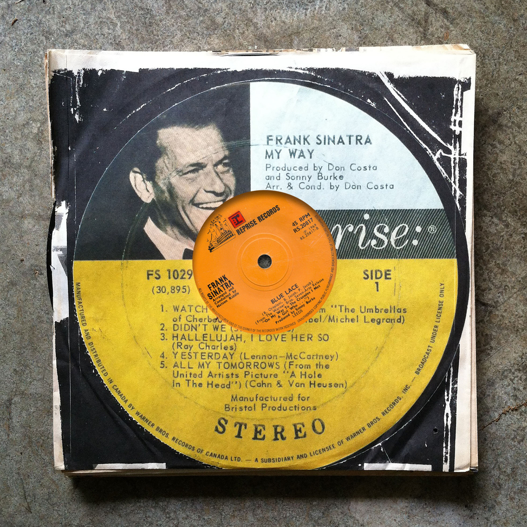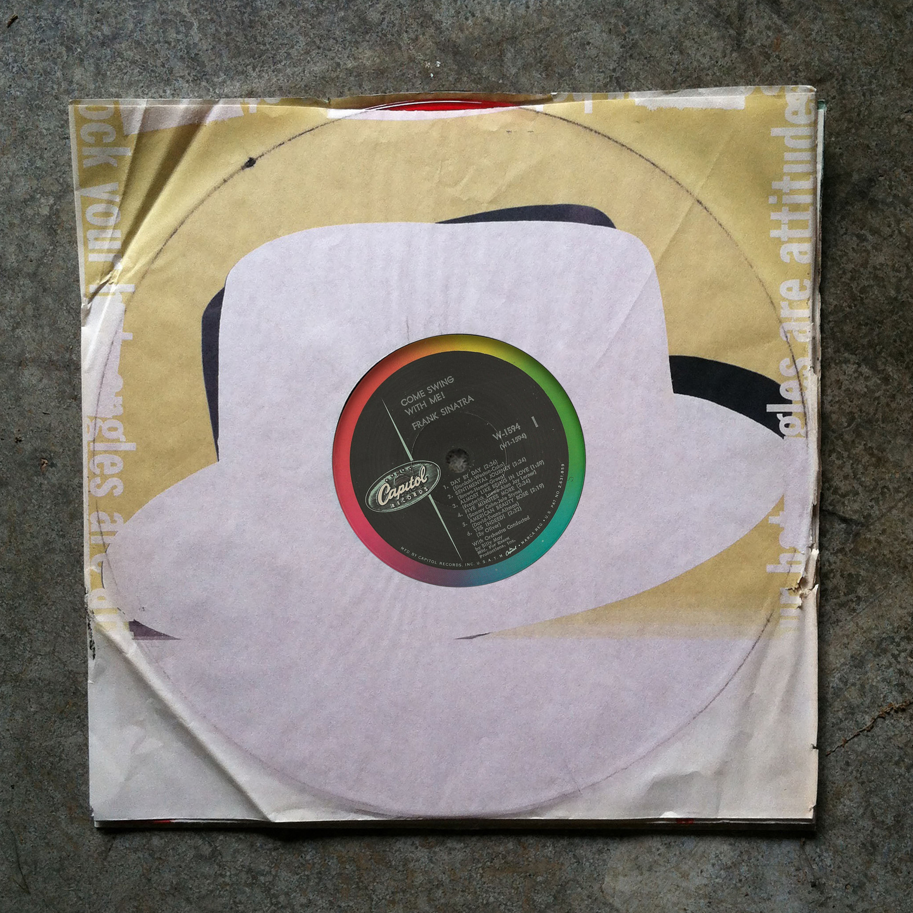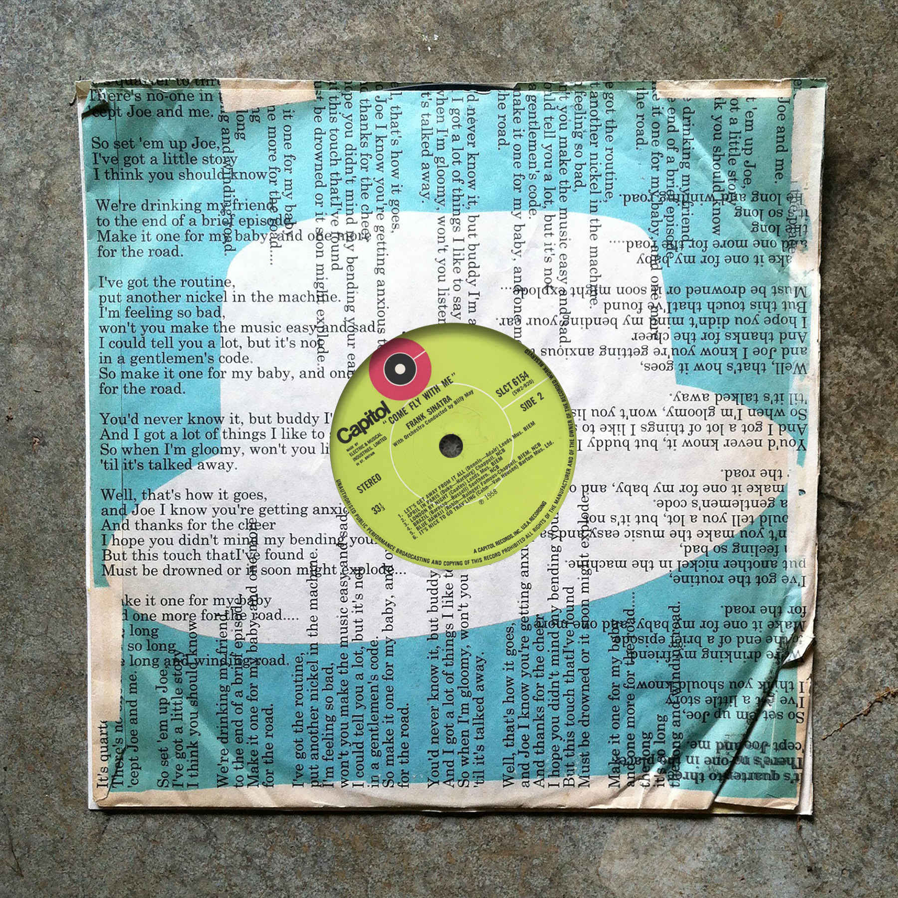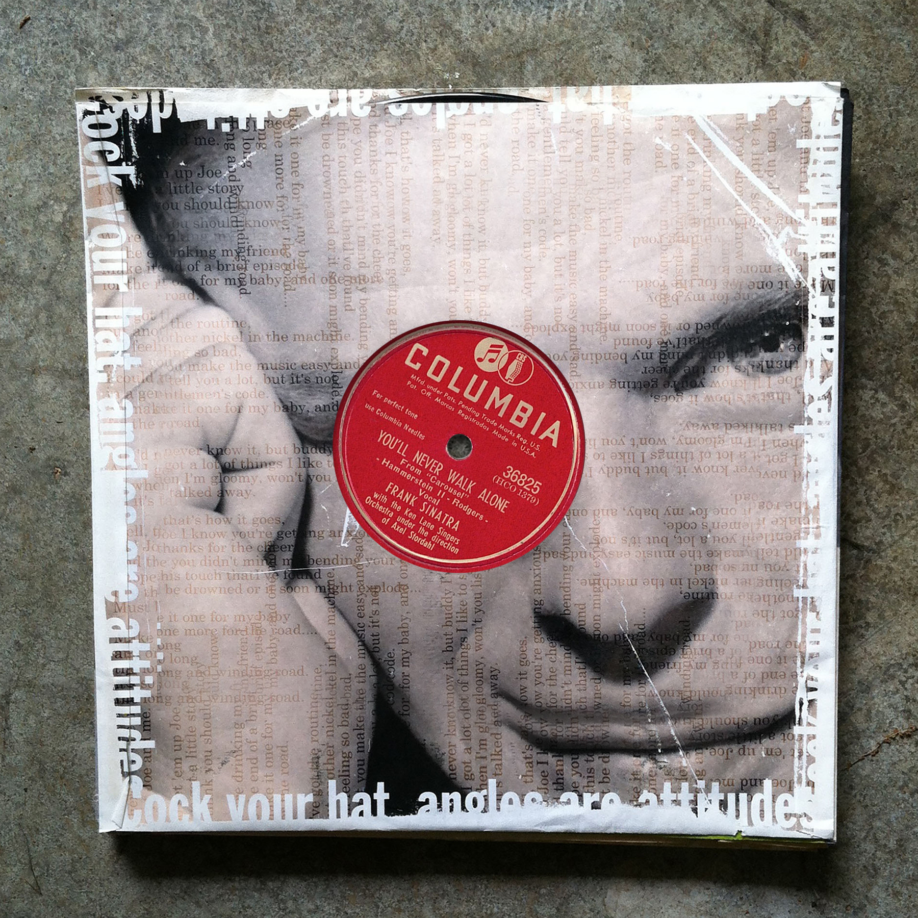 A series of mono prints on salvaged inner sleeves, for the "My Way" production at the the Roxy Regional Theatre.